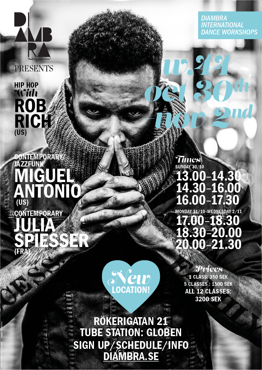 We welcome, with open arms MIGUEL ANTONIO back for the second time at Diambra. This amazing dancer and choreographer will inspire you to move in new ways and every class is different and something new.